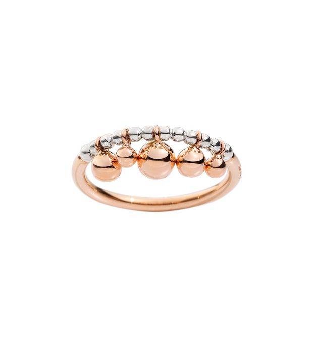 Anello Bollicine in oro rosa 9 kt con dettaglio in argento e sfere in oro rosa 9 kt.