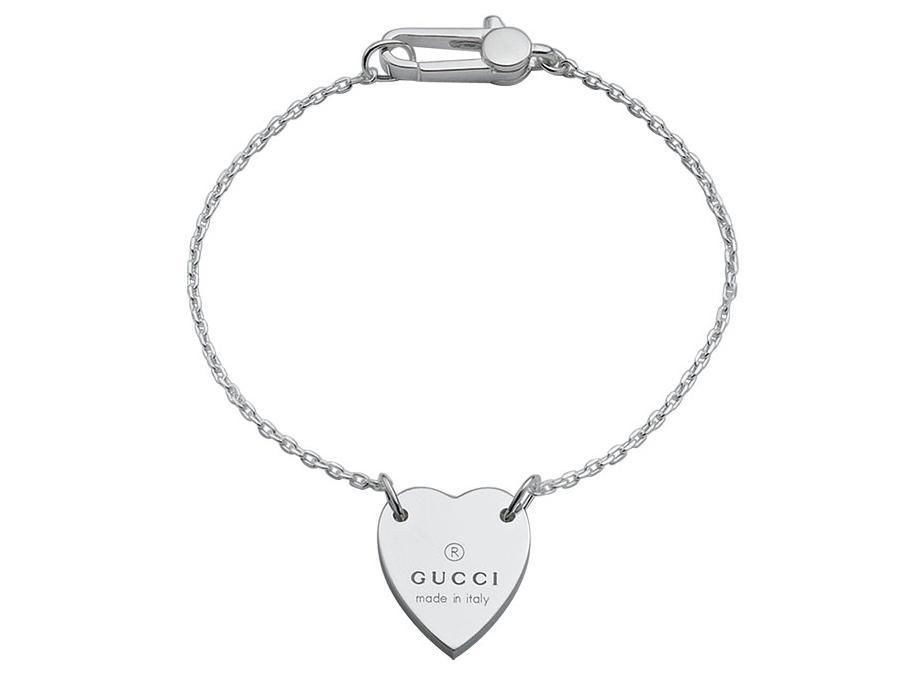 Bracciale in argento con cuore inciso Gucci trademark, peso 5,5 g
