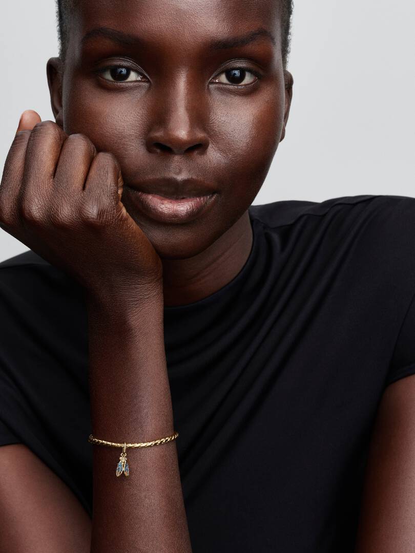 Indossa il nuovo charm pendente Cicala. Con finitura in oro, ali luminose in resina plique-à-jour, occhi scintillanti e un corpo che emette un delicato suono, questo gioiello incanta i sensi. Giralo per svelare l’incisio