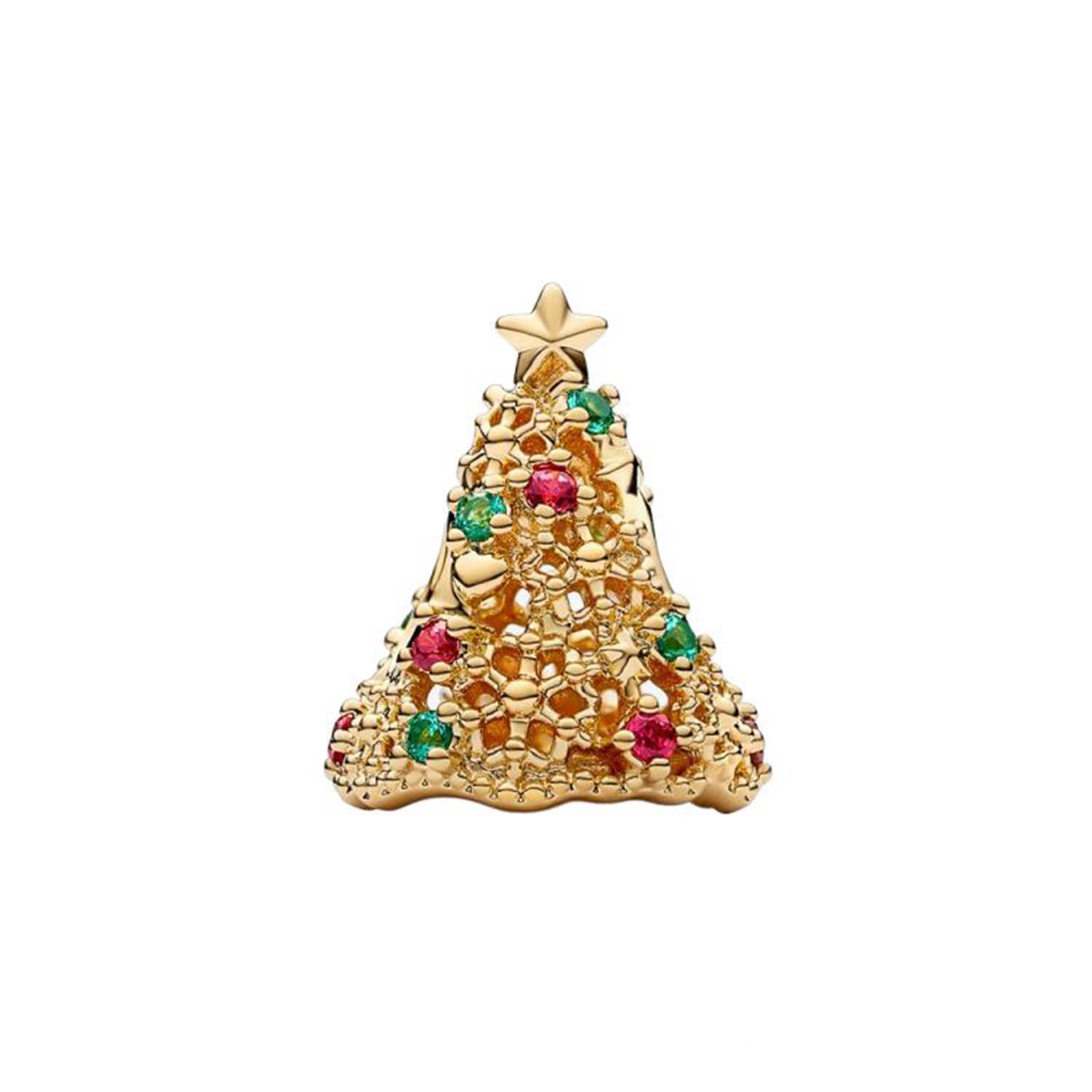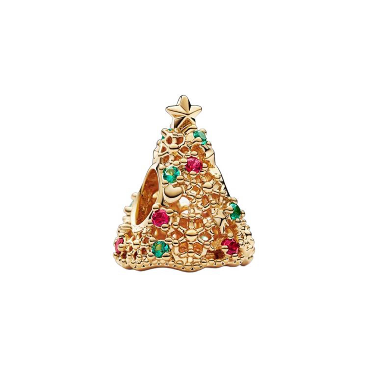 Preparati per le feste con il charm Openwork Albero di Natale. Celebra la magia delle feste con questo charm scintillante, rifinito nell’esclusiva lega metallica placcata oro 14k, che dona una calda e avvolgente luminosità. L’albero di Natale con lavorazione openwork include stelle, cuori e fiocchi di neve, oltre a pietre verdi e rosse che rappresentano altre decorazioni pendenti. Una stella in alto e un fiocco di neve intagliato in basso completano questo gioiello ricco di dettagli. Indossalo con altri charm sfavillanti per esprimere tutto il tuo amore per questo meraviglioso periodo dell’anno.