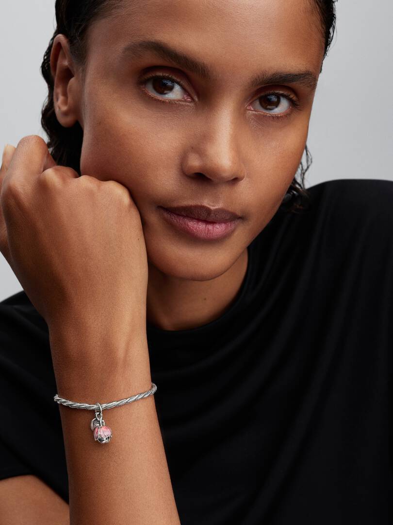 • Sboccia con gratitudine. Questo Charm pendente fiore in Argento Sterling 925 si apre su tre petali stratificati con un centro rifinito in oro e presenta un cristallo verde creato dall’uomo e resina rosa scintillante; il