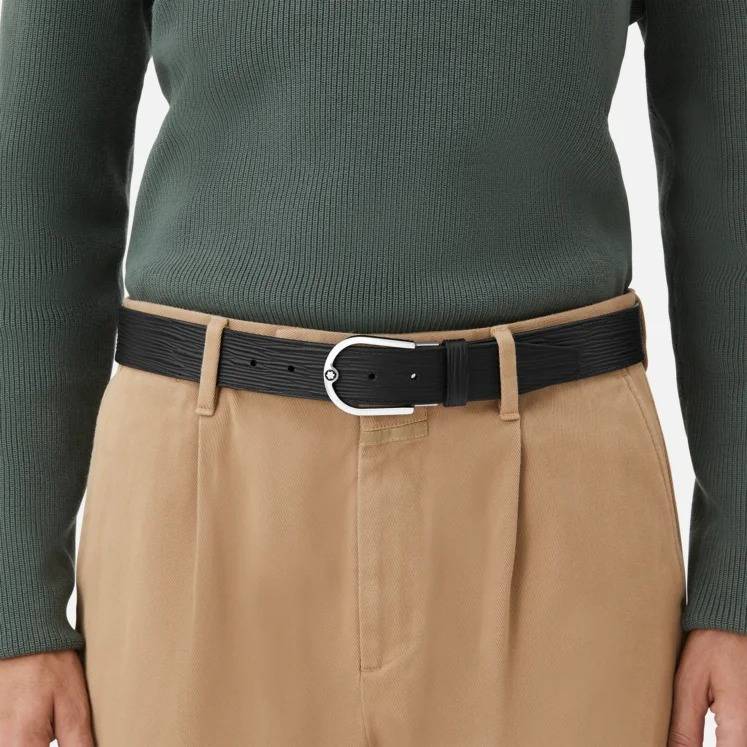 Cintura Montblanc 4810 Nera con fibbia a ferro di cavallo