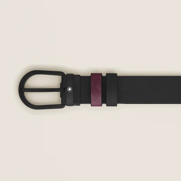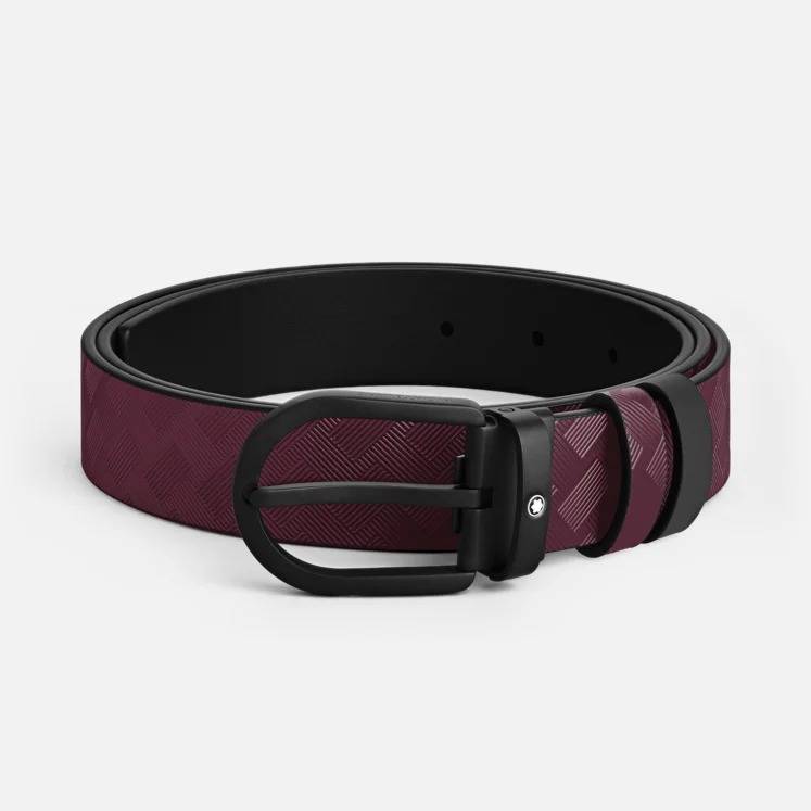 This versatile reversible belt features a refined black horseshoe buckle for two looks in one. On one side it is crafted from luxurious Extreme 3.0 embossed leather in a rich cassis shade, while on the other side the soft smooth black leather creates a classic look for an effortlessly elegant style suitable for any occasion.