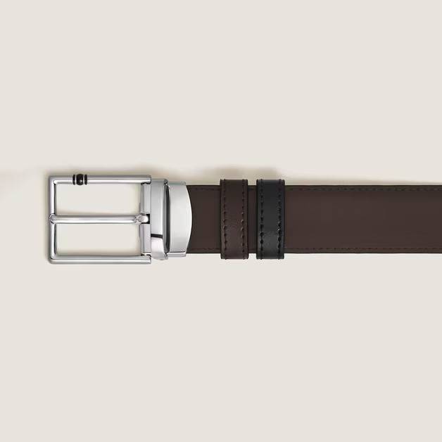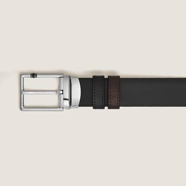 Enhance your everyday style with this sophisticated 30 mm reversible leather belt. The rectangular buckle, distinguished by its polished palladium finish and three black rings, adds a delicately luxurious touch. Both sides of the reversible belt are made of smooth Meisterstück leather, offering the option of classic black or opulent ebony. This versatile belt is an elegant addition to any wardrobe.