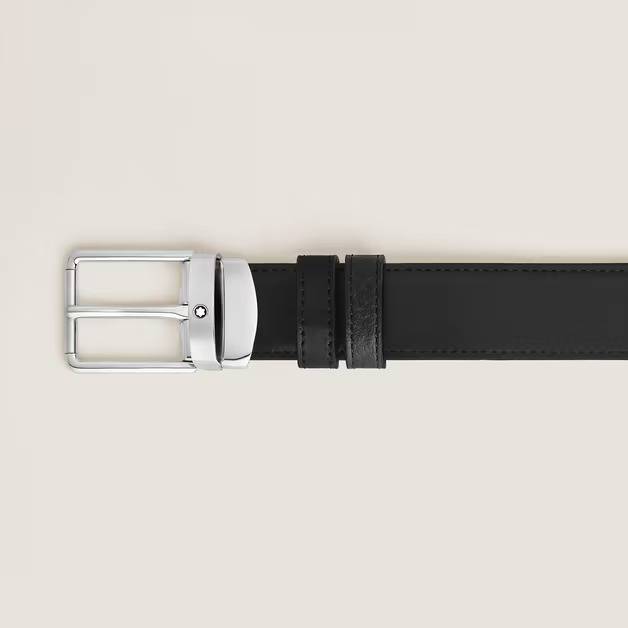This 35 mm reversible leather belt exudes understated elegance thanks to its polished palladium-coated Everyday pin buckle. One side is crafted from black leather, offering a soft, textured feel, while the reverse is crafted from smooth black Meisterstück leather for a touch of refined sophistication. The minimalist and refined rectangular silhouette of the buckle, complemented by the clean lines of a discreet Montblanc logo, makes this belt a versatile accessory for any occasion.