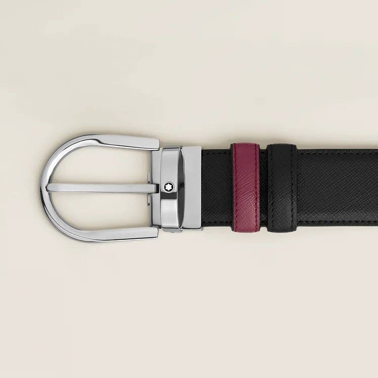 Cintura Montblanc Reversibile Nero Cassis con fibbia a ferro di cavallo