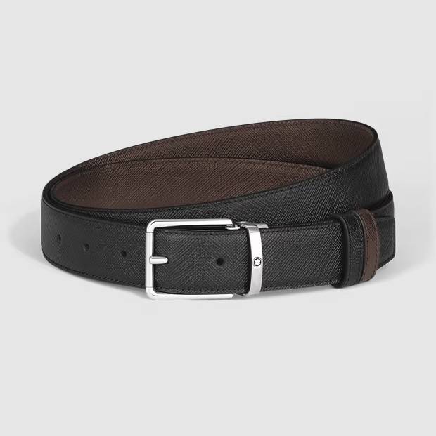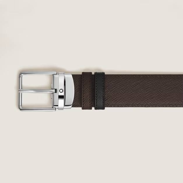 This 30 mm reversible leather belt exudes understated sophistication thanks to its polished palladium-coated Everyday pin buckle. One side of the belt is crafted from embossed black Sartorial leather, with a refined and textured finish, while the other side is made from the same material in a rich ebony hue. The minimalist and refined rectangular silhouette of the buckle, complemented by the clean lines of a discreet Montblanc logo, makes this belt a versatile accessory.