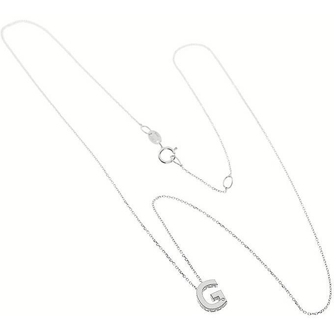 Collier in Oro bianco 9 ct  Brillante ct. 0, 003 gh peso 1 g circa, lunghezza collana rolò 42 cm circa