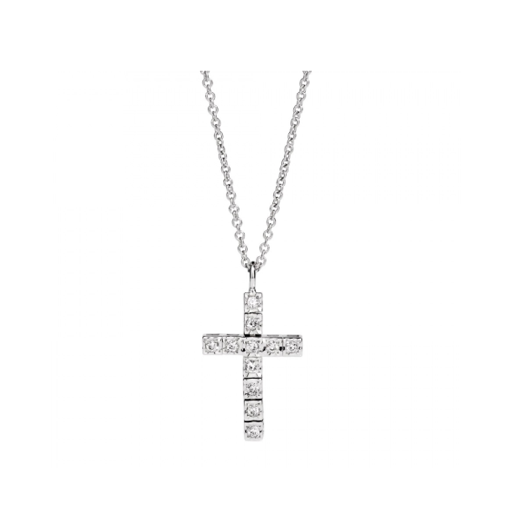 Girocollo Recarlo della collezione Face cube. Croce in oro 18kt del peso di gr. 3.56, lunghezza 45 cm, con brillanti bianchi del peso complessivo di ct 0.45 Colore G Purezza SI.
