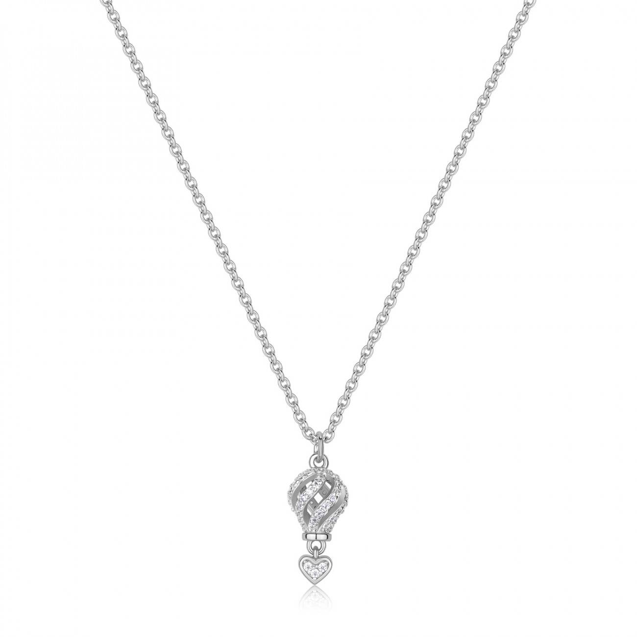Collana corta in argento 925‰ con pendente a forma di mongolfiera, 60 cubic zirconia bianchi