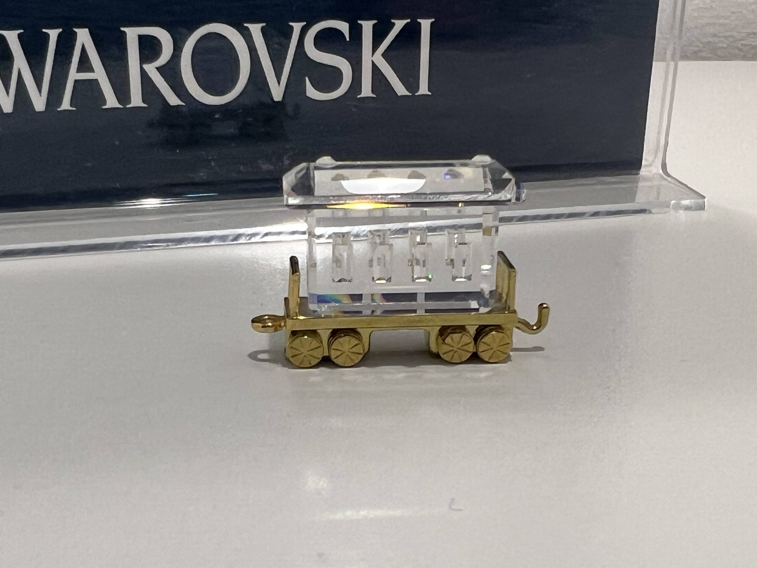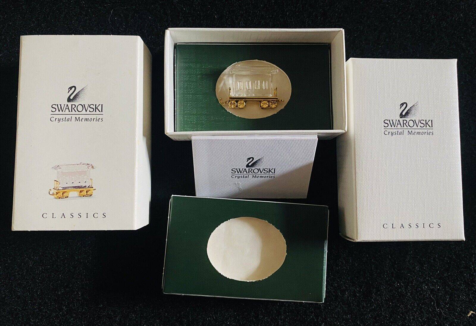 This retired Swarovski Crystal Memories Passenger Car was part of the “Childhood Dreams” collection. The metal is gold plated.