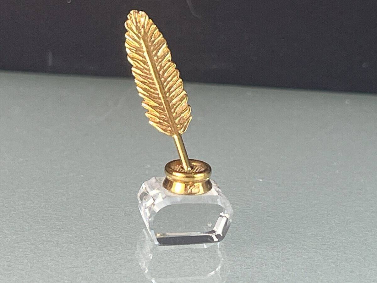 This retired Swarovski Crystal Memories inkwell and quill (which is removable) was part of the “Special Treasures” collection. The metal is gold plated.