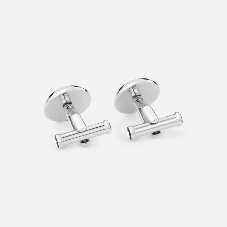 Meisterstück cufflinks celebrate understated style and elegance. Linked to the Montblanc Meisterstück writing instrument, the timeless round shape in stainless steel with a black hexagon patterned lacquer inlay creates a jewel with a powerful Montblanc signature.