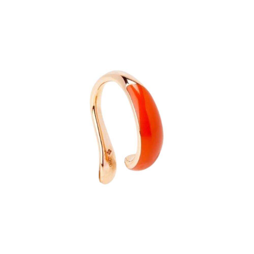 Earcuff rondelle in argento dorato oro rosa 18K e smalto rosso.