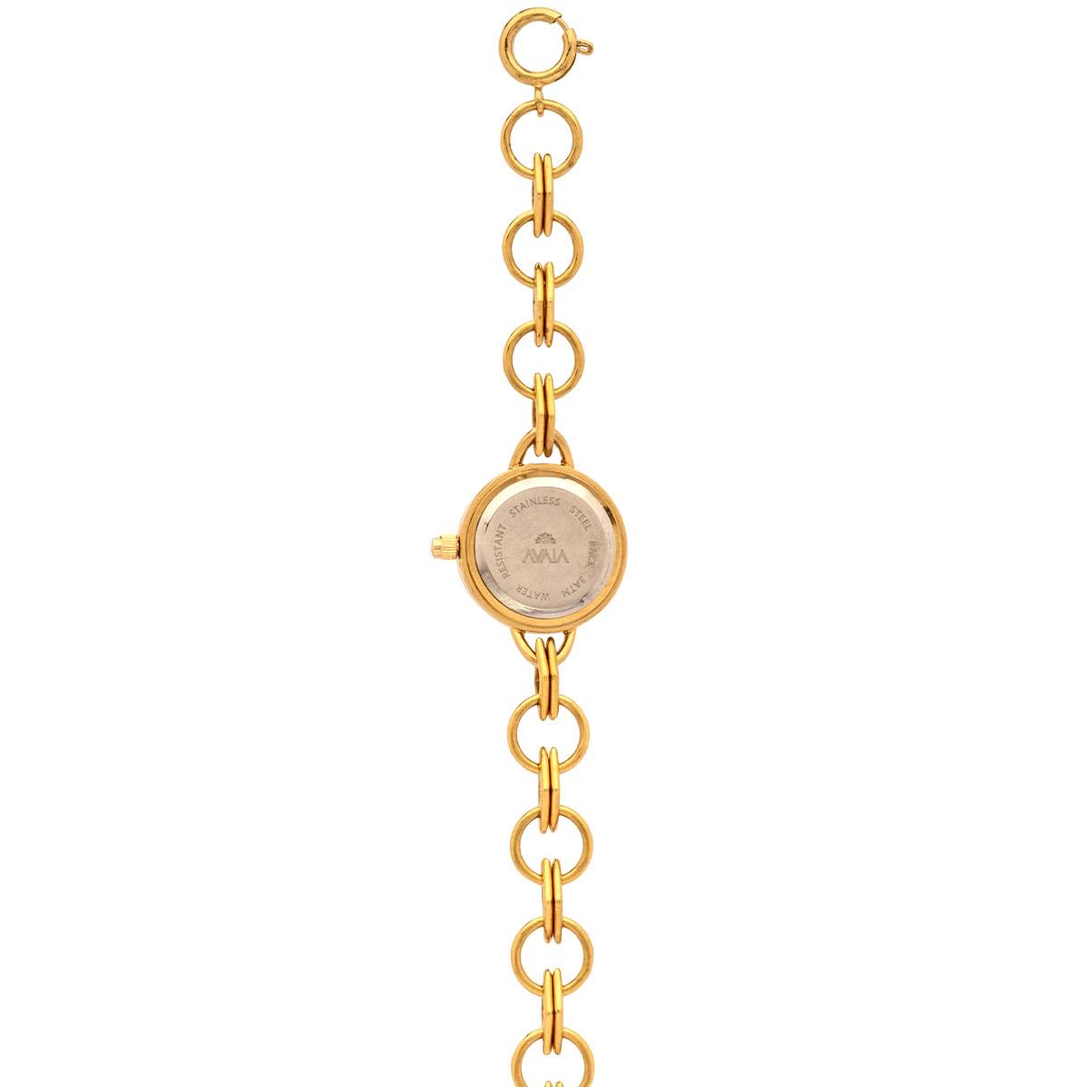 Orologio gioiello in ottone con coperchio con trattamento “IP Plating”, Cassa: 0 26mm – colore GOLD Meccanismo Miyota 2035, WATER RESISTANT: 3 ATM”, Fondello in acciaio inossidabile.