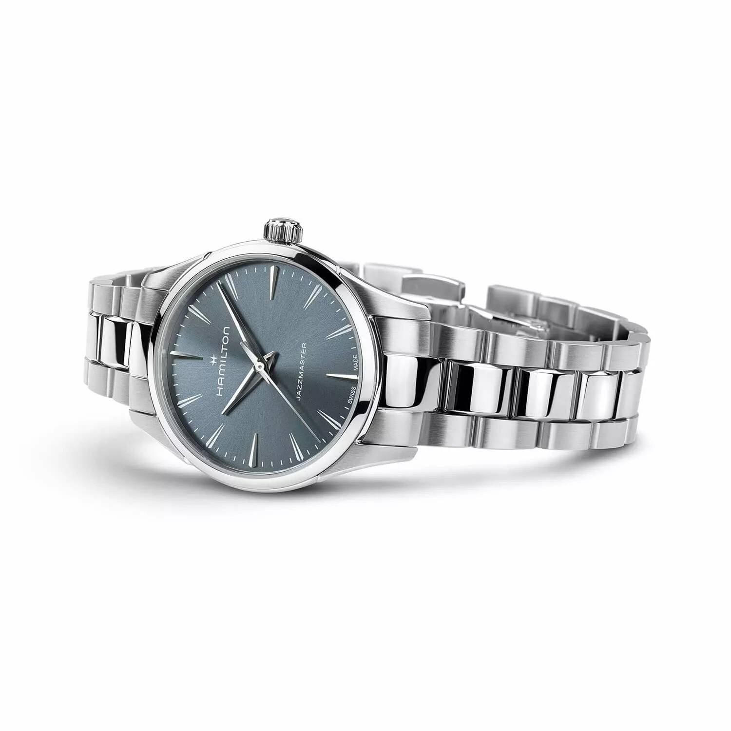 Intramontabile e raffinato, il Jazzmaster Quartz 32 mm presenta un quadrante blu polvere scuro spazzolato con finitura soleil e sfere “dauphine” scheletrate, che conferiscono un tocco moderno allo stile tradizionale. La cassa ultrasottile e i dettagli lucidi e spazzolati creano una silhouette elegante. Un orologio classico ed elegante per una raffinatezza disinvolta.