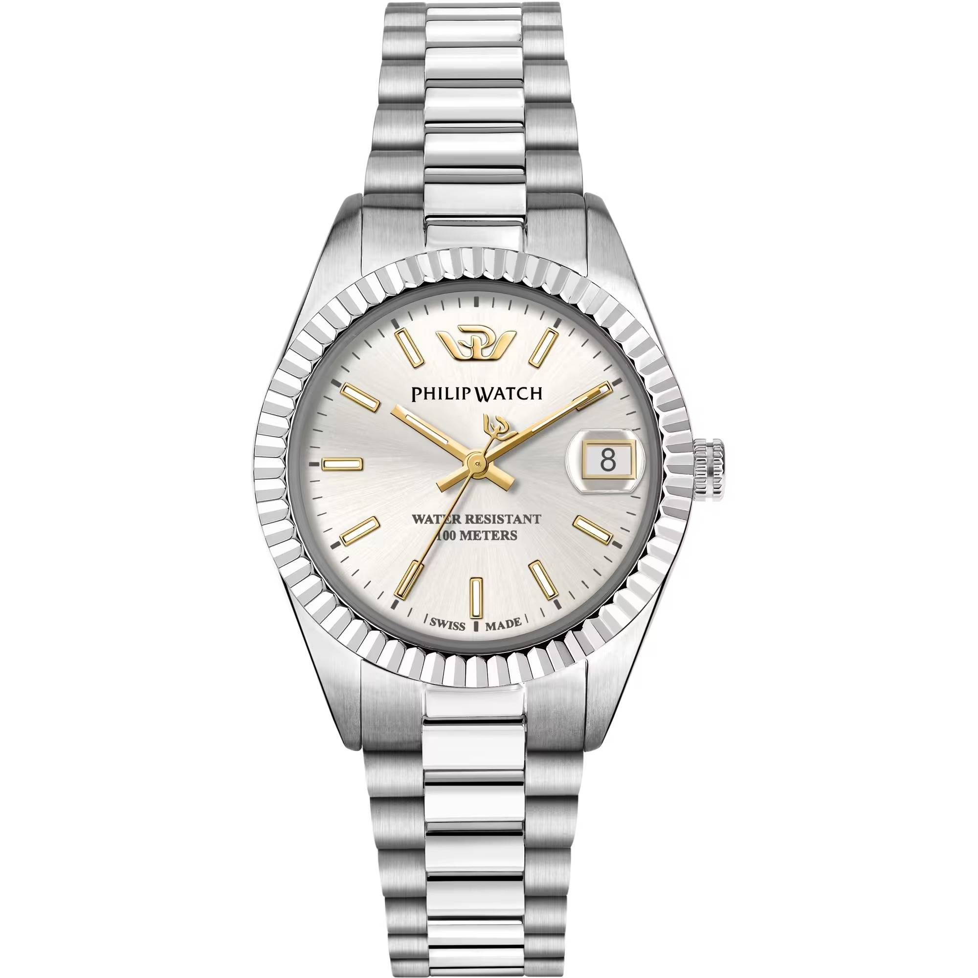 Ancora una volta la collezione Caribe stupisce con orologi da donna impeccabili, come questo modello con bracciale in acciaio e quadrante madreperla. Luminoso a dir poco, è assolutamente discreto e raffinato, un orologio da indossare ogni giorno, perfetto da mattina fino a sera. Versatile e delicato nelle tonalità, il suo design rivela la profondità della sua storia. Philip Watch infatti si è evoluto nel tempo, ma ha mantenuto saldo il suo stile iconico, italianissimo e di ispirazione vintage. E’ soprattutto nei dettagli che si rivela questa ricercatezza: come nella finitura centrale del bracciale jubilée, nella lunetta zigrinata che incornicia il quadrante, negli indici, che alternano stili e simboli diversi. Se quello a ore dodici è rimpiazzato dal logo Philip Watch, gli altri ai punti cardinali sono costituiti da numeri romani, un chiaro riferimento alla nostra predilezione per lo stile vintage. Resistenza all’acqua fino a 100 metri di profondità e vetro zaffiro a proteggere il quadrante sono le altre caratteristiche che danno ancora più valore a questo orologio, che alla bellezza e allo stile garantisce sempre resistenza ed affidabilità. Per questo i movimenti, dopo 160 anni, continuano ad essere prodotti in Svizzera: perché il vostro tempo è importante e merita di essere scandito dal miglior strumento possibile.