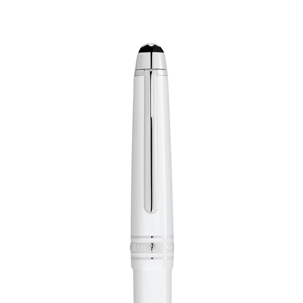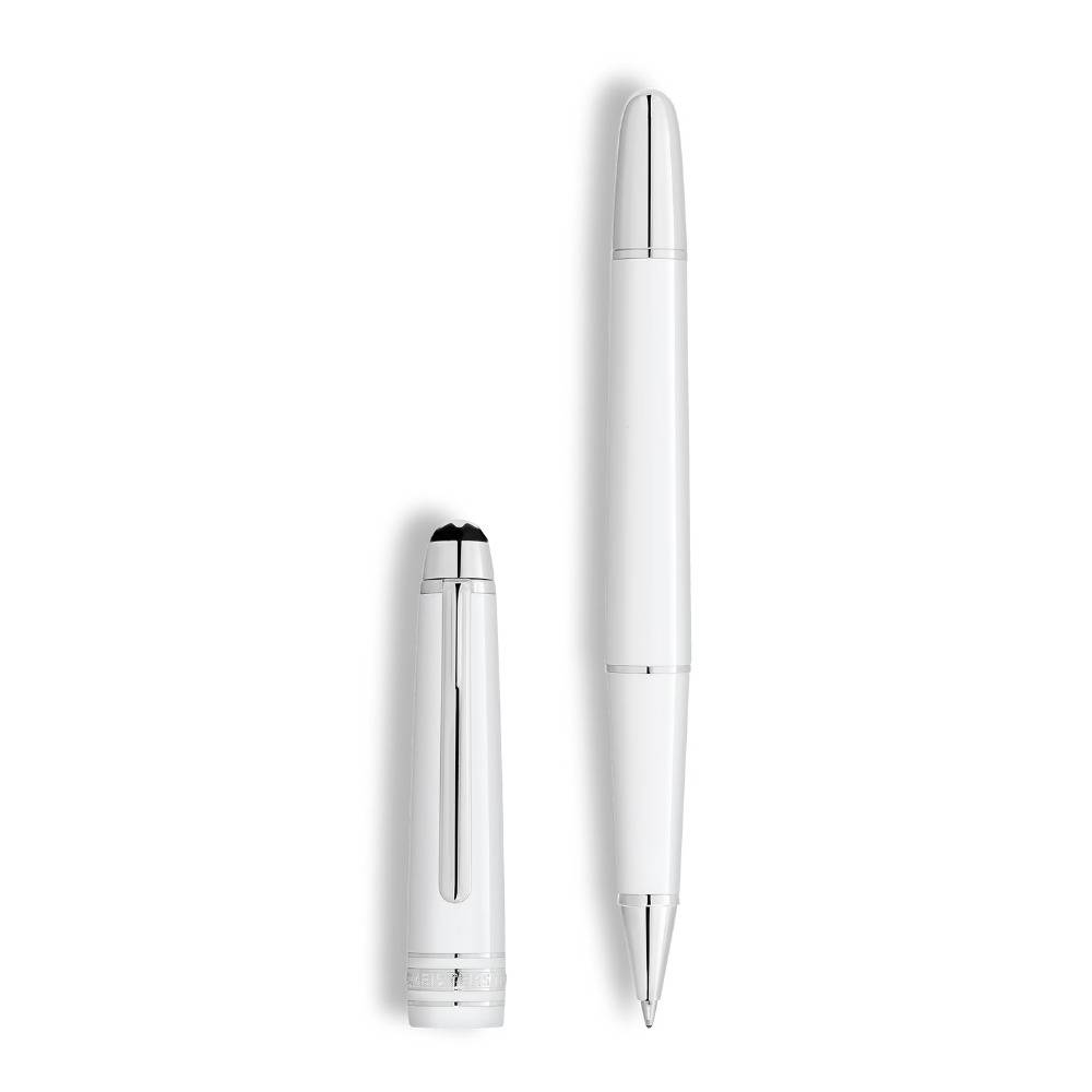 The Meisterstück Classique Rollerball Pen in white precious resin with elegant platinum-coated details, crowned by the white Montblanc emblem inlaid on the cap, becomes an icon with a unique design.