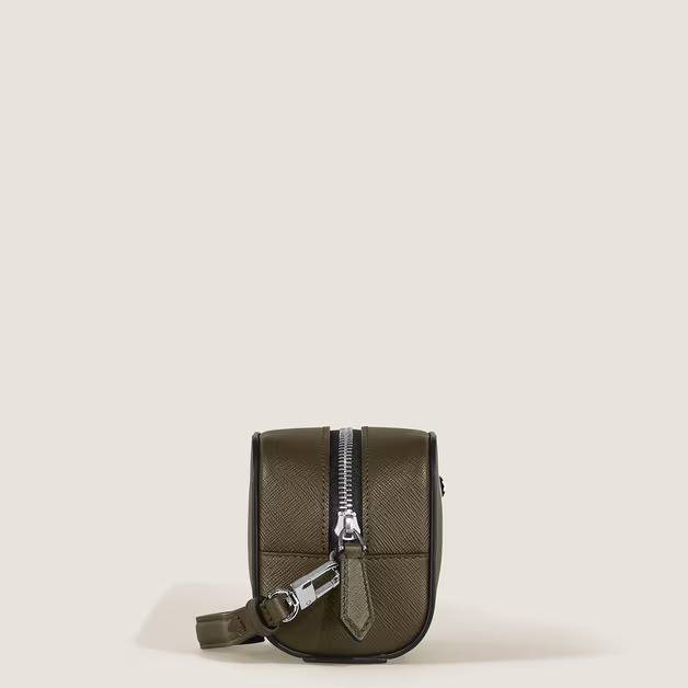Questa piccola pochette da toilette si ispira al mondo della scrittura, con linee pulite che richiamano la forma di una busta. Realizzata in pelle Sartorial goffrata kaki, presenta uno scomparto principale con cerniera e una tasca interna aperta, ideale per riporre gli oggetti essenziali da viaggio; il tutto in un formato raffinato e compatto.